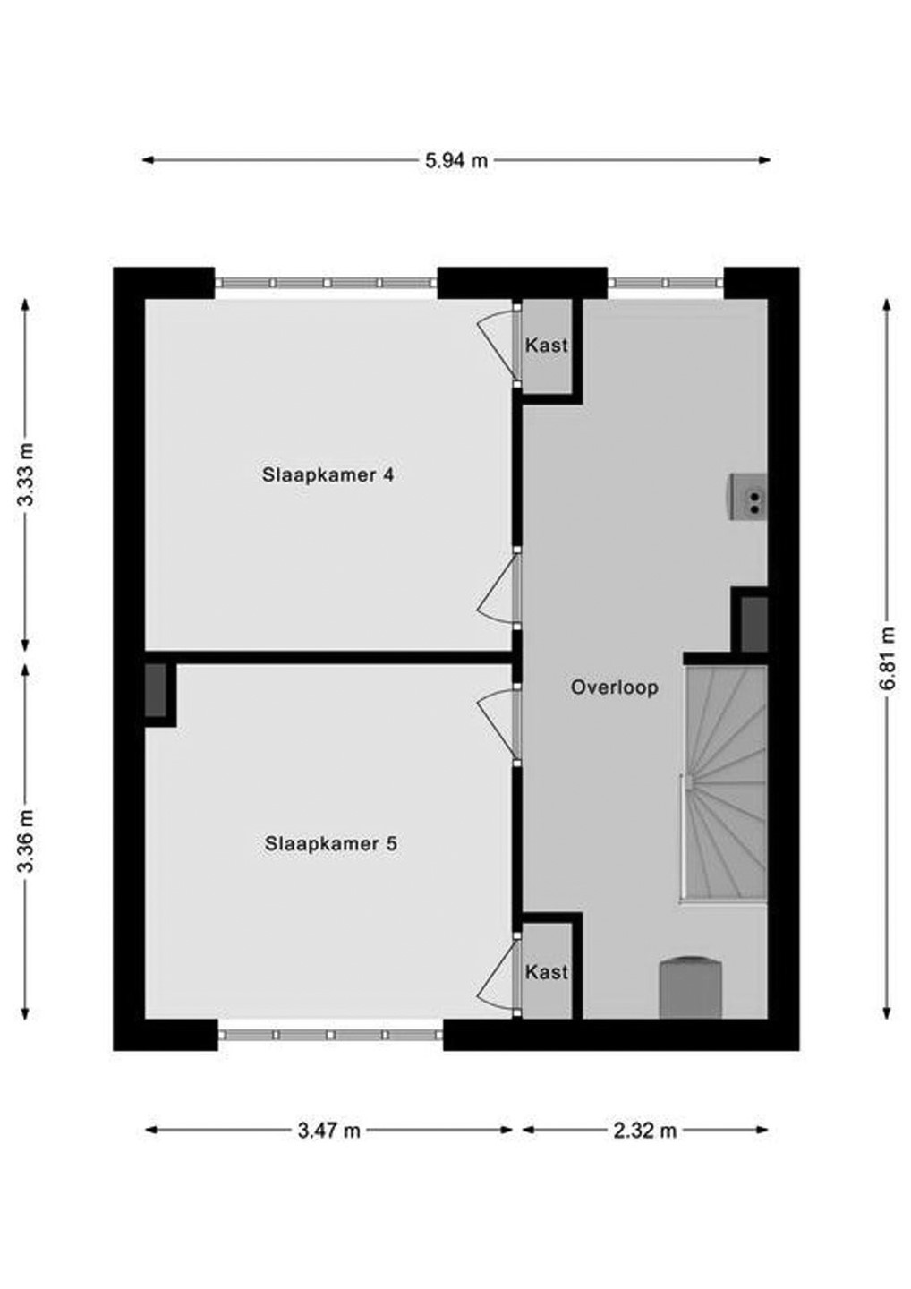 Met een vaste trap bereikbare overloop met opstelplaats witgoed en cv-ketel (Nefit HR combi 2020 gehuurd incl. onderhoudscontract voor €32,65 per maand). Op deze verdieping ook 2 slaapkamers welke eveneens v.v. zijn van vaste inbouwkasten. De vloer op deze verdieping is afgewerkt met laminaat, de plafonds zijn afgewerkt met gipsplaten de muren zijn gestuct.