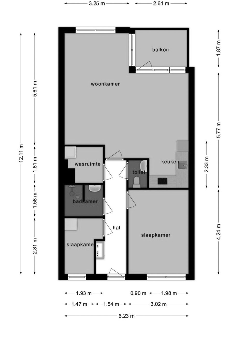 • 2 slaapkamers aan de voorzijde (ca. 13m2 en ca. 5m2); de vloer is v.v. tapijt, de muren en plafonds zijn in lichte kleuren afgewerkt