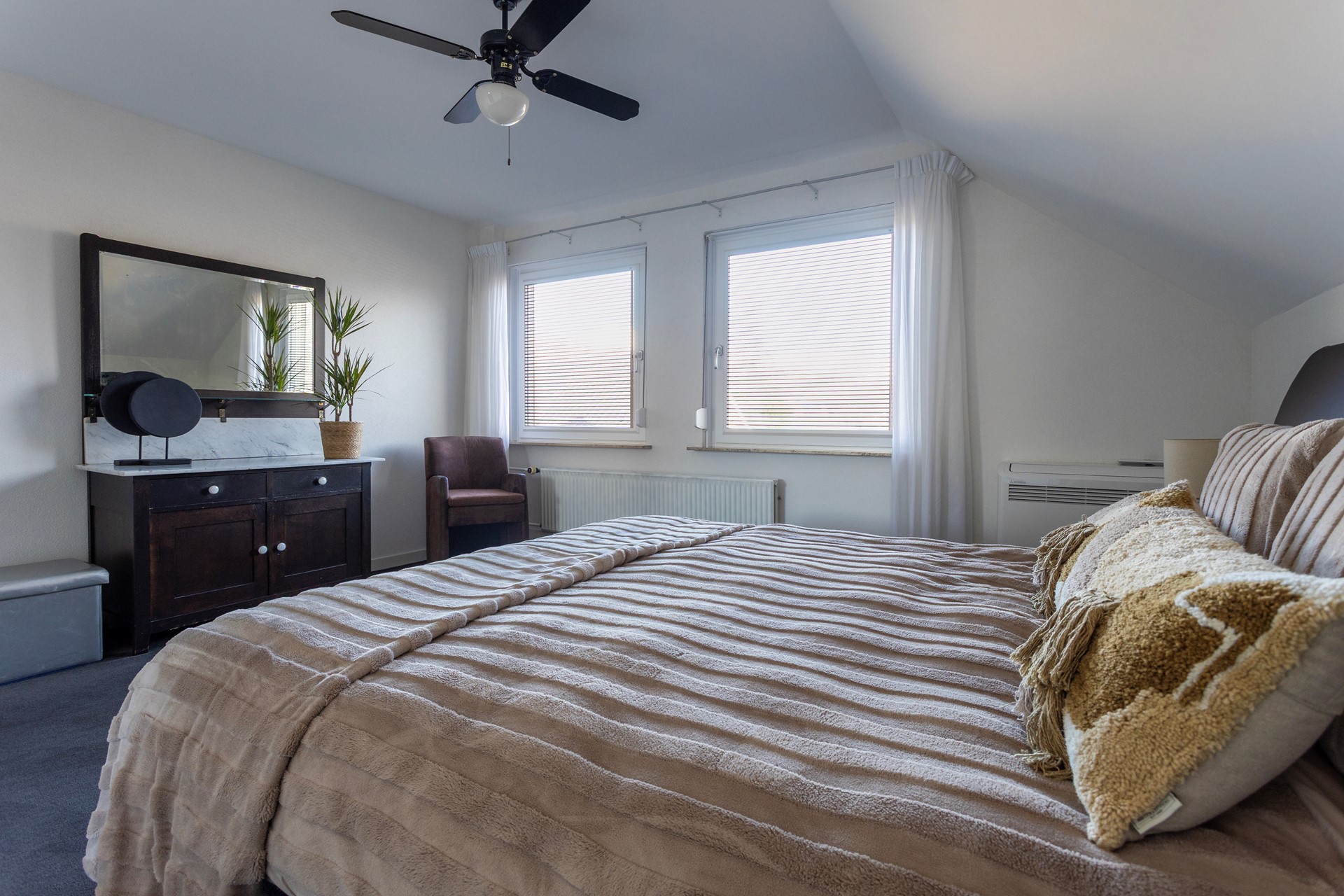 • Grote slaapkamer voorzien van airco met buitenunit (verwarmen en koelen)